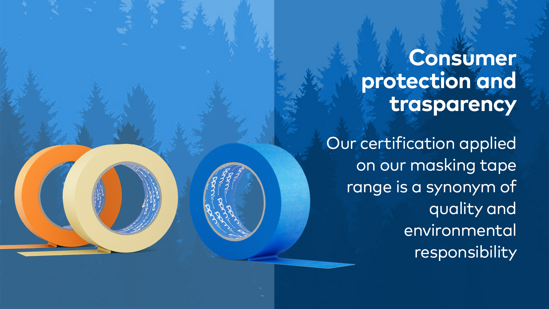 Our PEFC certified masking tape range is not only a product of quality, but also of environmental responsibility. The certification is a testament to our commitment to reducing the impact of our products on the environment and promoting sustainable forest management. Consumer protection and transparency are placed at the center.