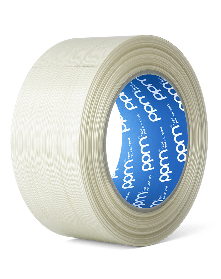 Mono oriented fiberglass reinforced filament tape engineered for high-performance requirements. This reinforced filament tape is a reliable bundling and high capacity reinforcement solution with strong holding power for medium and heavy-duty applications. The fiberglass reinforced filament tape 1020 is characterized by a three-layered polypropylene backing and a fiberglass structure that runs longitudinally across it. It’s the fiberglass weave that makes this reinforced filament tape so strong. Thanks to its thickness and a powerful hot melt adhesive, this tape provides an excellent hold on the application surface and adapts to different materials. This reinforced filament tape is employed in the packaging sector and in the industrial field, in box reinforcing, shipping and palletizing. Thanks to its strong fiberglass structure, this reinforced filament tape can be used whenever high duty reinforcement and fastening applications are required.